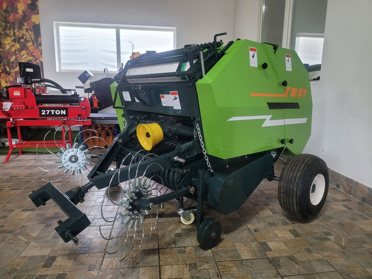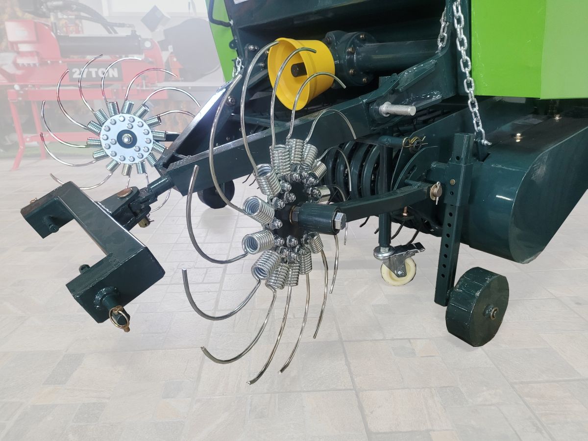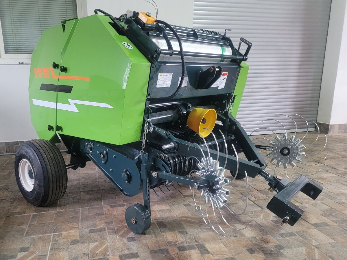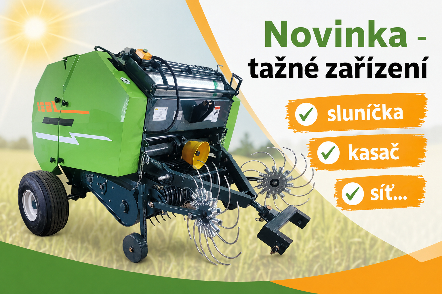 Nyní NOVINKA - lisy nabízíme i v tažené variantě. Součástí tažného setu je tažné zařízení s výkyvným ramenem, 2 páry držáků nahrnovačů, 1 pár sluníčkových nahrnovačů, 1 pár podpěrných kol sběracího ústrojí, delší kardanová hřídel (PTO4T x 1200).