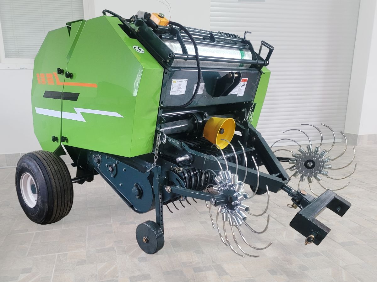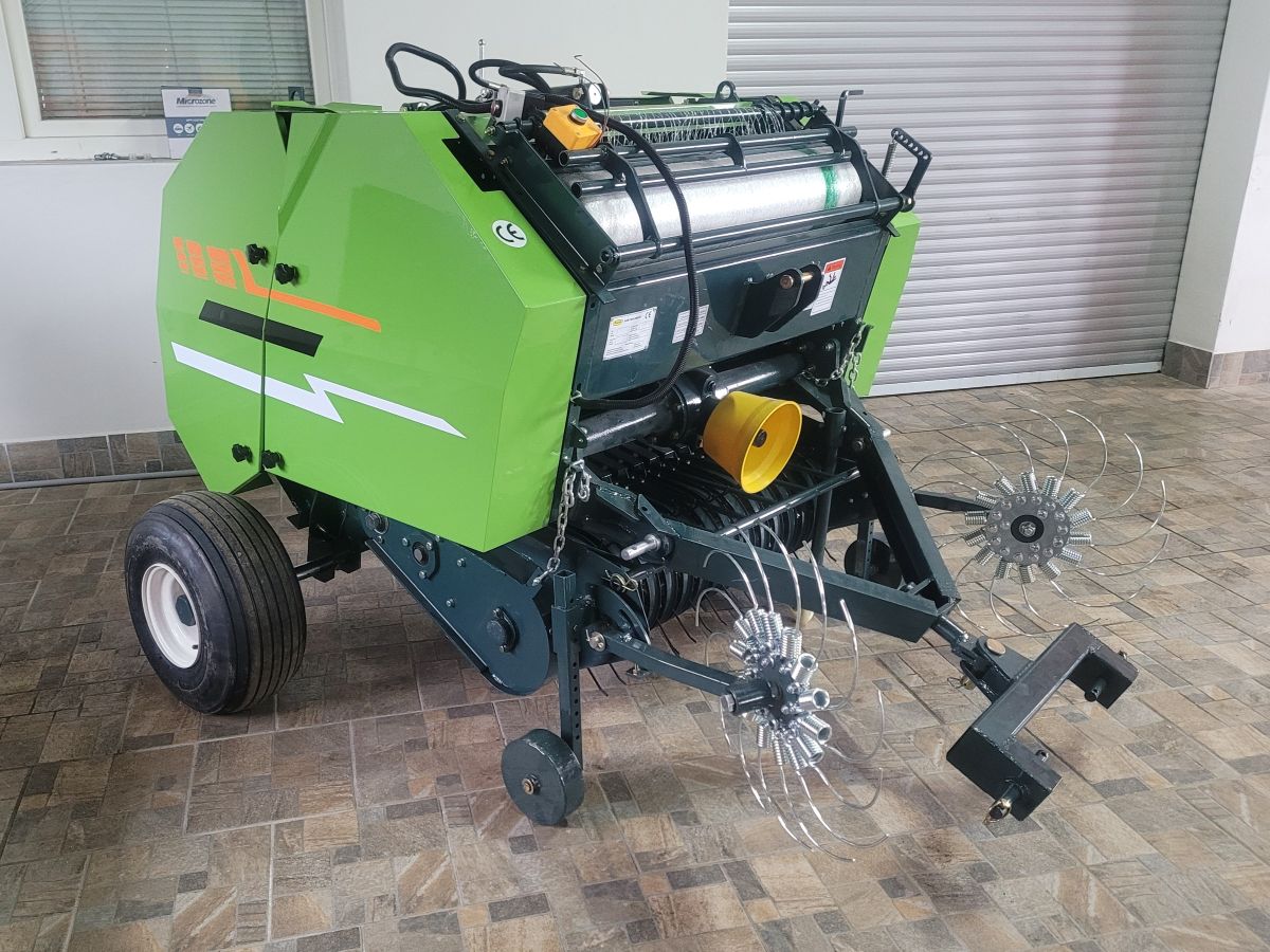 TAŽENÁ VARIANTA - VIDEO Mini lis na kulaté balíky Dabaki - Gordon - Spider 1070 FN je vhodný pro běžné lisování sena a slámy. Aktivní kasač umožňuje i lisování zavadlé píce - senáže. Při lisování senáže je aktivní kasač nutností, při lisování sena a slámy je velkou výhodou.