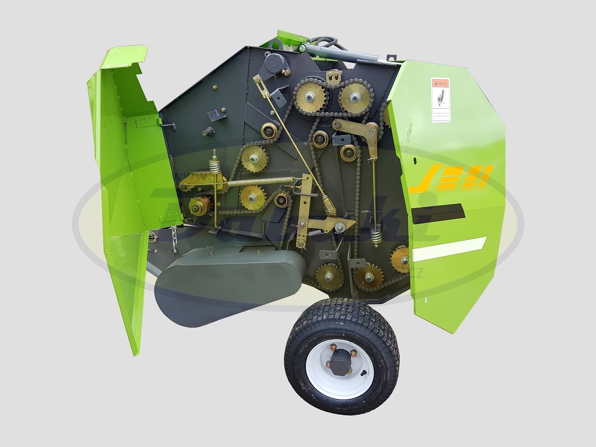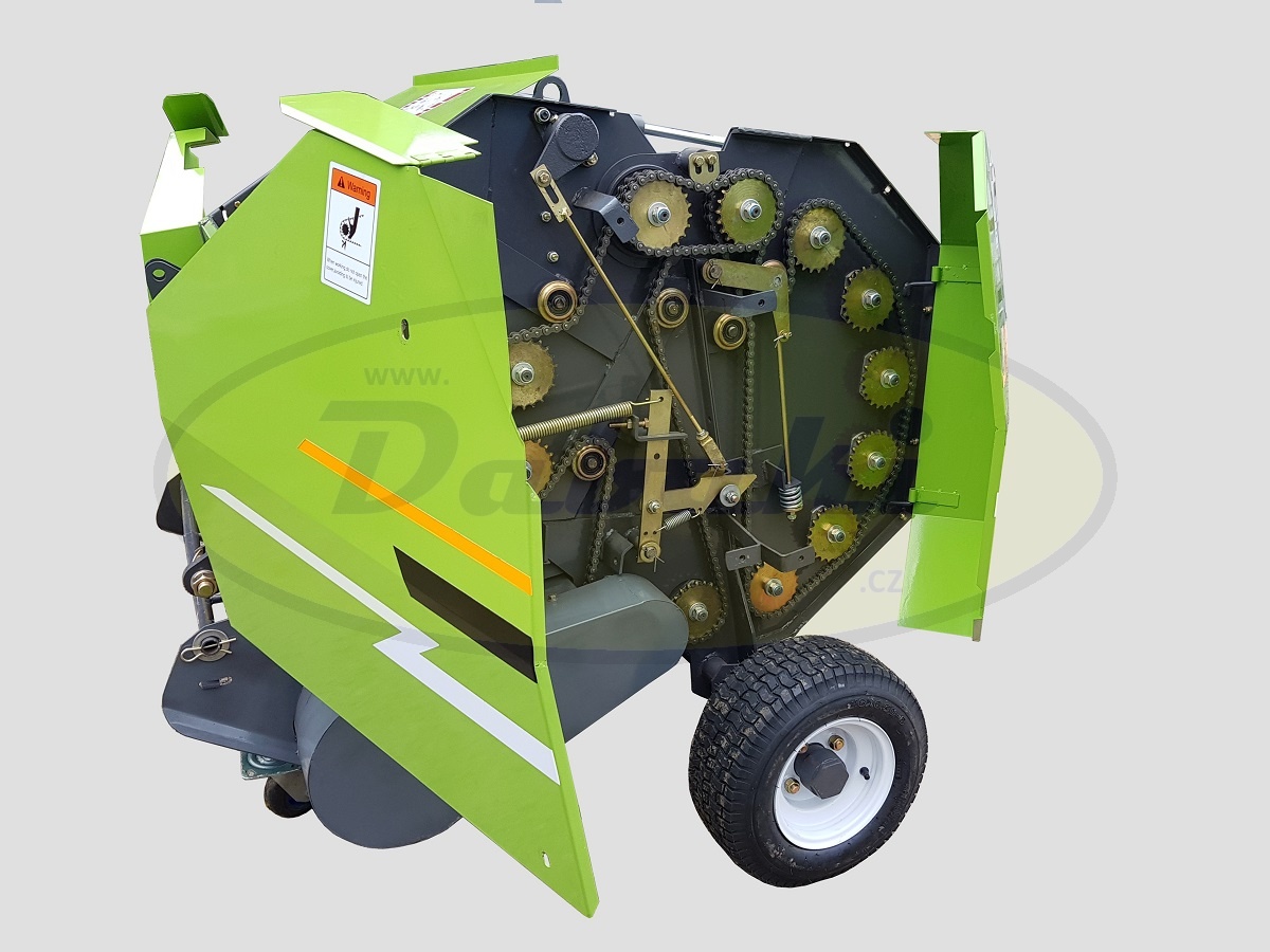 - Jako ochrana stroje při přetížení je na hlavním, řetězovém kole převodovky umístěň pojistný střižný šroub. Při přetížení minilisu na kulaté balíky dojde k přeštípnutí bezpečnostního šroubu a tím je celý stroj spolehlivě uchráněn před poškozením.