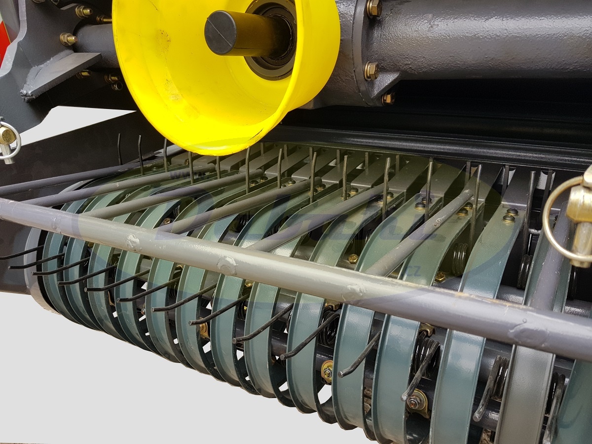 - Lisovací komora svinovacího lisy na kulaté balíky je po celém svém obvodu osazena otáčejícími lisovacími válci. Ty zajišťují plynulé a rovnoměrné rozmístění lisovaného materiálu po celé ploše komory. Pro zvýšení spolehlivosti a životnosti jsou inovované válce vyrobeny ze silnějšího a kvalitnějšího materiálu.