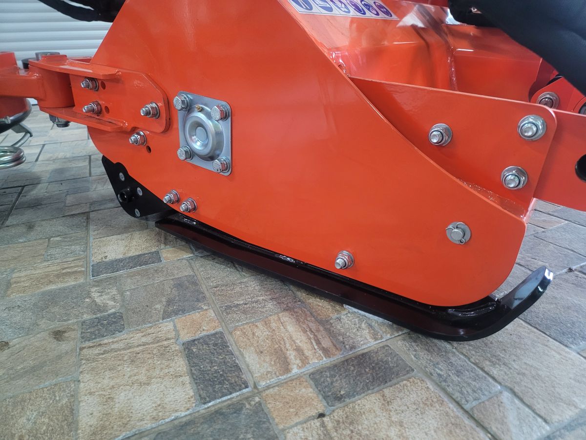 Na rotoru jsou spirálově, volně uchycena T-kladívka – 800 gramů. Pracovní výšku lze nastavit pomocí bočních ližinZadní válec chrání mulčovač při najetí ližiny do terénní prohlubně. Mulčovače dodáváme včetně náhonového hřídele PTO.