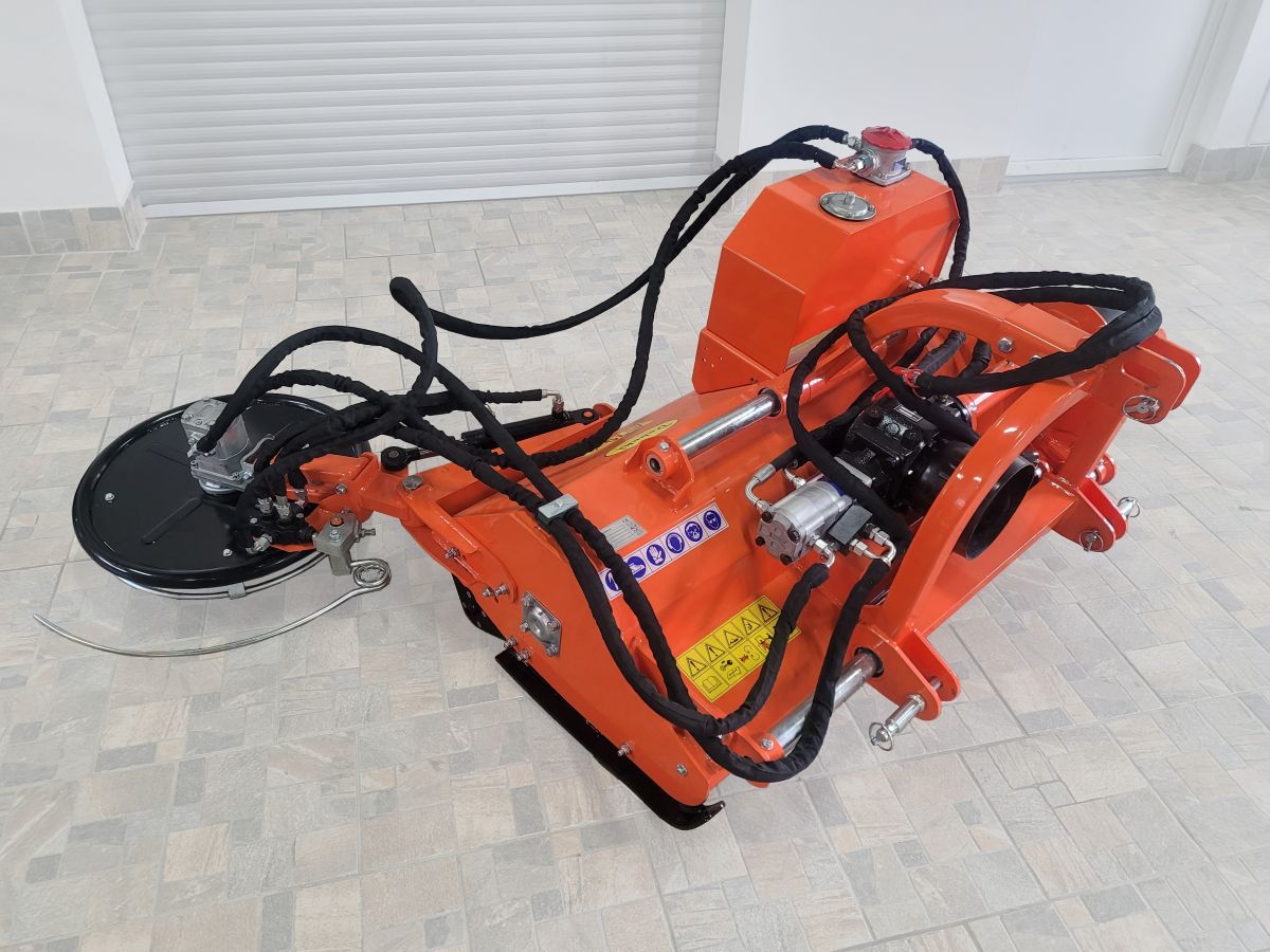 První, výkonnější hydraulické čerpadlo pohání hydromotor mulčovacího disku. Přetěžovací, hydraulický ventil chrání hydromotor před přetížením. To podstatně zvyšuje životnost hydromotoru. Druhé hydraulické čerpadlo pohání dvoučinnou, hydraulickou pístnici zaklápění disku.