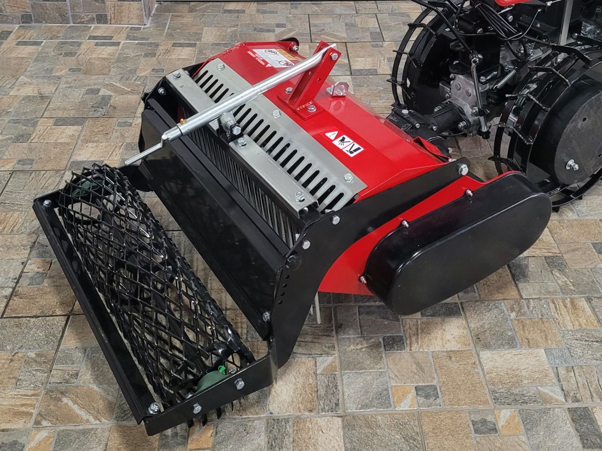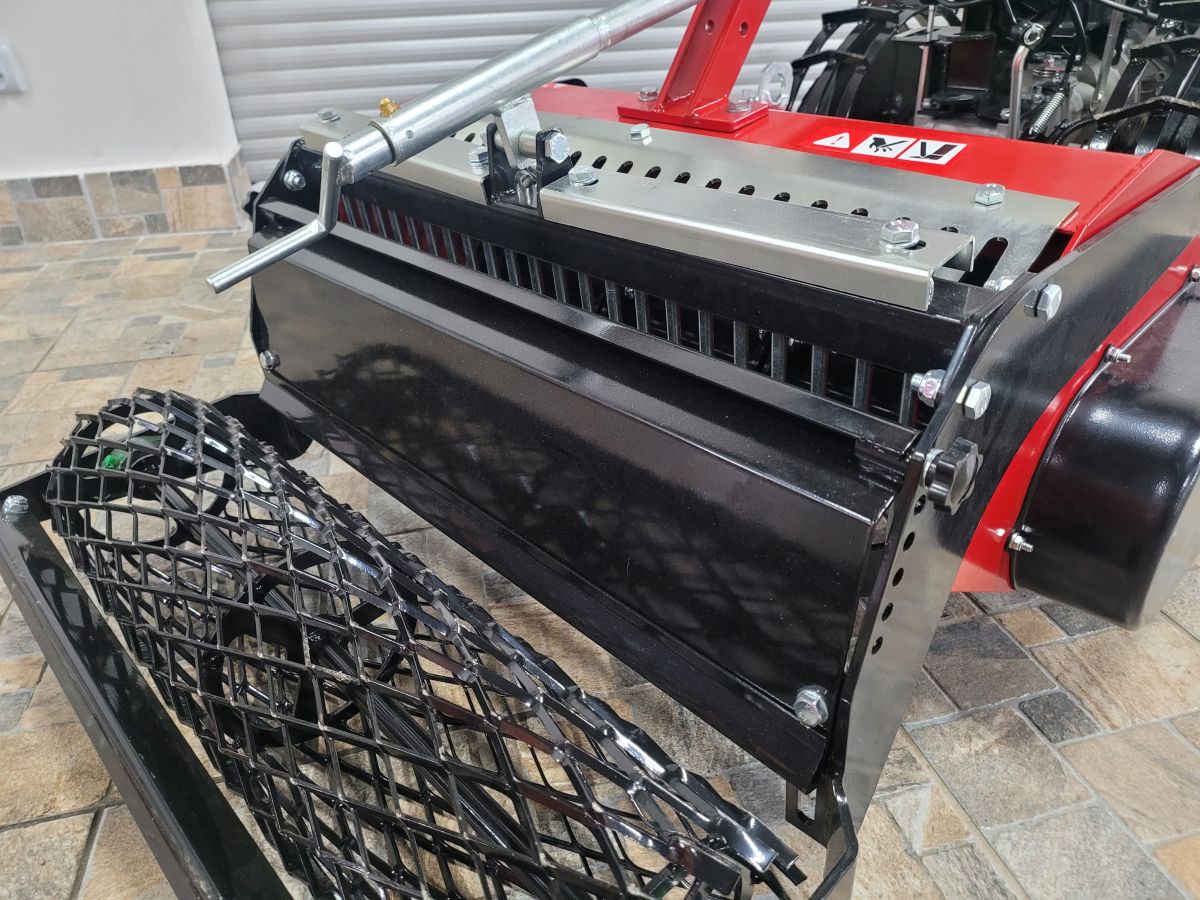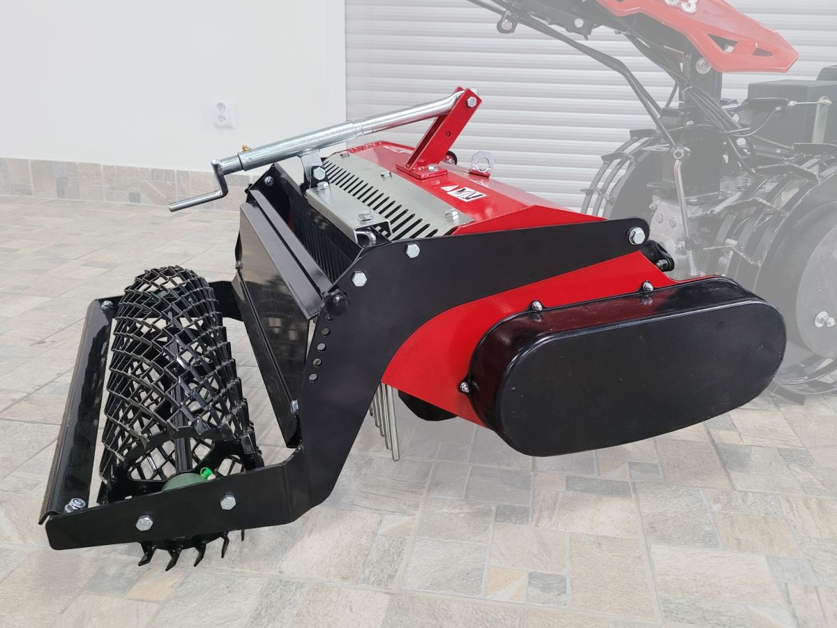 Šroubovým mechanizmem lze nastavit výšku zadního válce a tím nastavit pracovní hloubku. Pro setí trávníku se doporučuje ideální pracovní hloubka 5 - 7 cm.