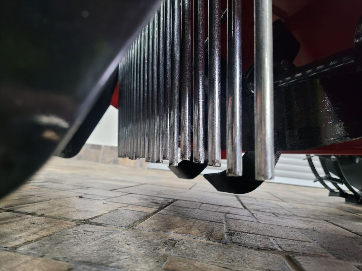 Zadní, výškově nastavitelný železný smyk urovná nakypřenou, zpracovanou zeminu. Zadní, síťový válec přiměřeně udusá zeminu do konečné fáze.