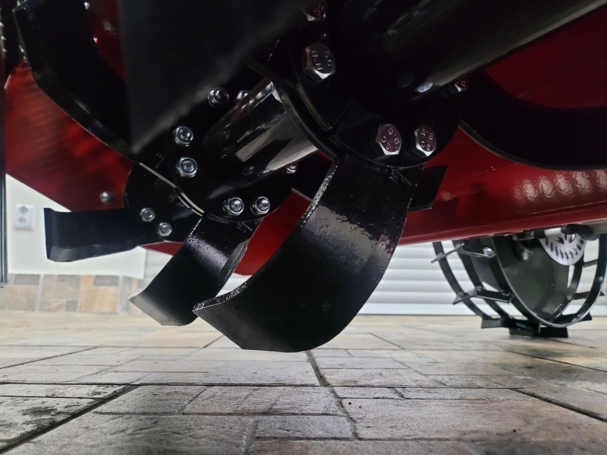 Na čtyřech držácích rotoru je pevně uchyceno šet párů pracovních nožů. (6 x levý nůž + 6 x pravý nůž). Narozdíl oproti běžným rotavátorům se rotor zakladače trávníku otáčí proti směru jízdy.