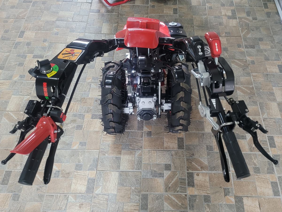 Ovládací prvky jsou ergonomicky umístěny na otočných madlech, v dosahu obsluhy. Na levém madle je páka spojky, bezpečnostní STOP páka, páčka levé brzdy, spínací skříňka, spínač pracovního LED světla. Na pravém madle je lanko plynu, páka prohorizontální natočení řidítek, páčka pravé brzdy, páka diferenciálu a čevená páka pro přednutí směru pojezdu. F - N - R. Páka pro vertikální nastavení řidítek je na středové konzoli. Ovládání převodovky a zapínání náhonu jsou dlouhými pákami z převodovky traktoru, umístěnými těsně pod řidítky.