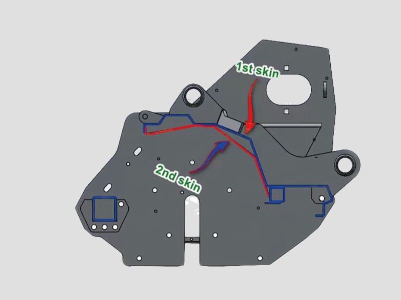 Oproti běžným mulčovačům je hlavním konstrukčním rozdílem zdvojené šasí mulčovače.