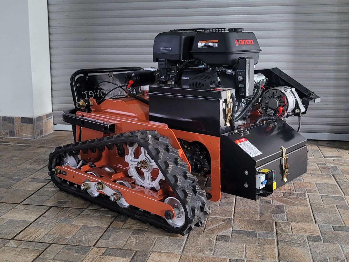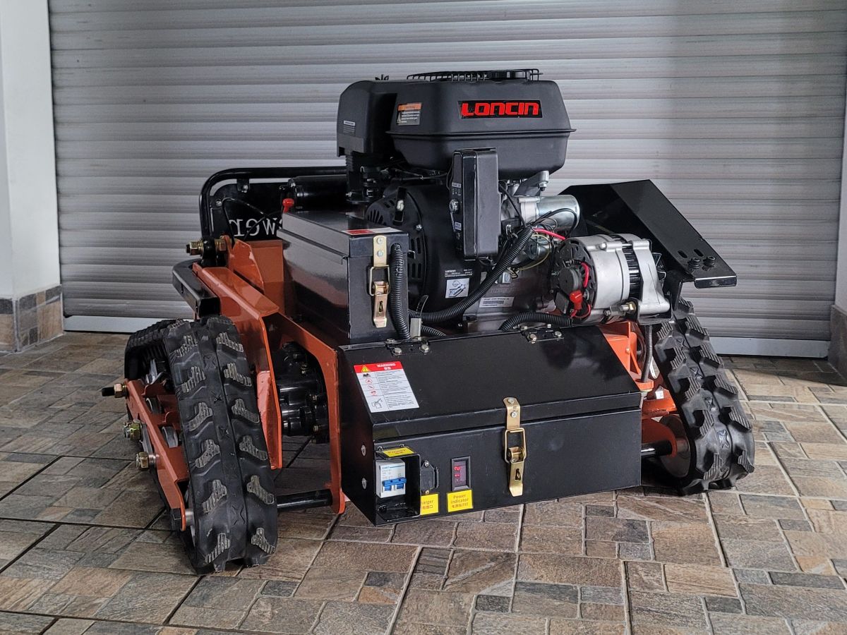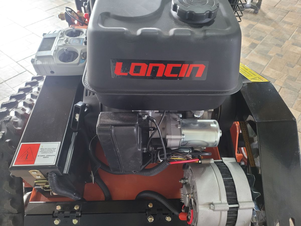 Pohon mulčovače na dálkové ovládání zajišťuje oblíbený a dlouhodobě osvědčený benzínový, 4-taktní motor Loncin o obsahu 420 ccm. Motor má dostečný výkon (14 HP) pro pohon mulčovacího ústrojí a pohon dvou, bezkartáčových motorů pro pohon pojezdových pásů. Motor je osazen elektrickým starterem. Startování je možné i ručně, startovací šňůrou.