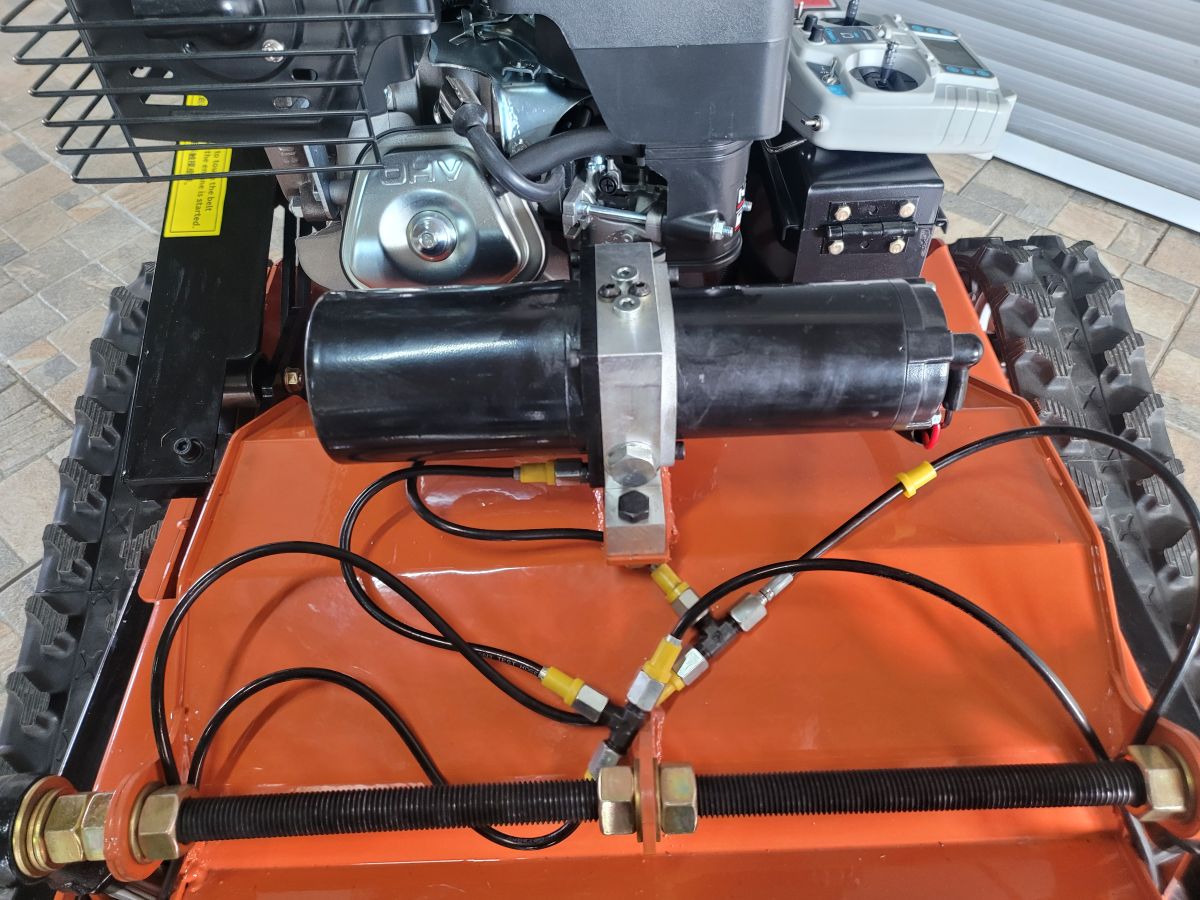 V přední části mulčovače je umístěho hydraulické ústrojí zdvihu mulčovacího ústrojí. Jedná o set elektricky poháněného hydraulického čerpadla s nádržkou hydraulického oleje, hadicové rozvody a dvě hydraulické pístnice. Pracovní výška je plynule nastavitelná dálkovým ovladačem v rozsahu 2 - 12 cm.