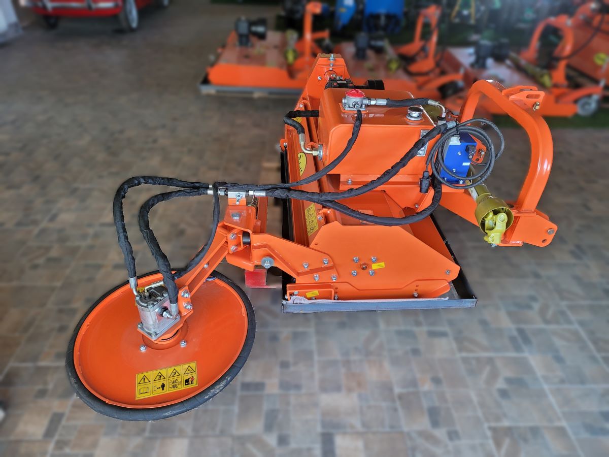 Výhodou výkyvného disku je možnost bezpečně mulčovač i podél pevných překážek, sloupků ohradníku, stromů. Přítlak mulčovacího disku lze plynule nastavit - dle pevnosti překážky.