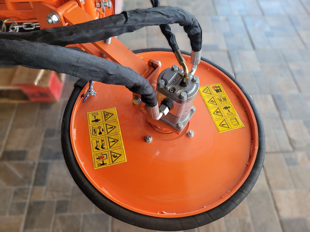 Hydraulický uzavřený okruh - nádrž hydraulického oleje (40l) , hydraulické čerpadlo, bezpečnostní hydraulický ventil, chladič hydraulického oleje s elektrickým ventilátorem, hydromotor pro pohon sekacího ústrojí disku. Mulčovač má mechanický boční posun. Na hlavní hřídeli jsou spirálově umístěna t-Kladívka (800g)