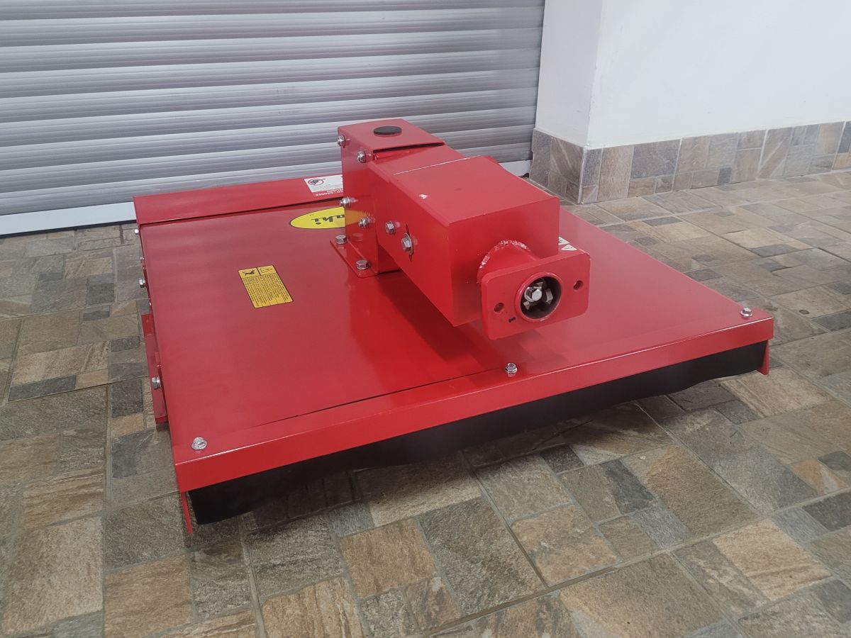 Výkon motoru jednonápravového traktoru je přímo přenášen do úhlové převodovky mulčovací sekačky. Na vávodové hřídeli převodovky je nasazeno rameno mulčovacích nožů.