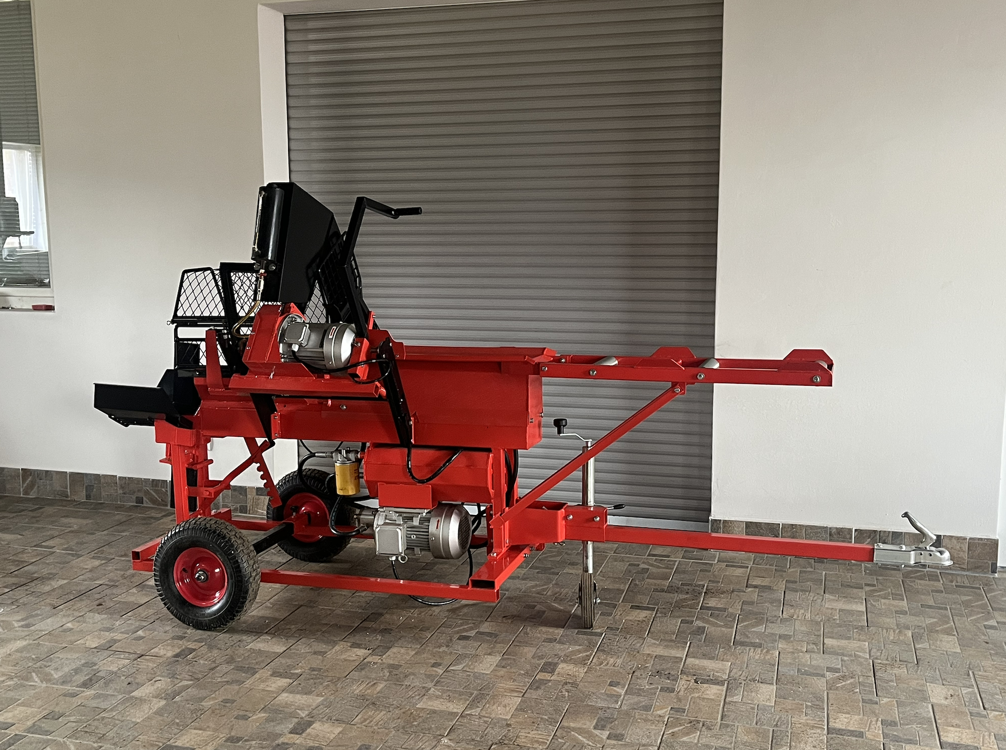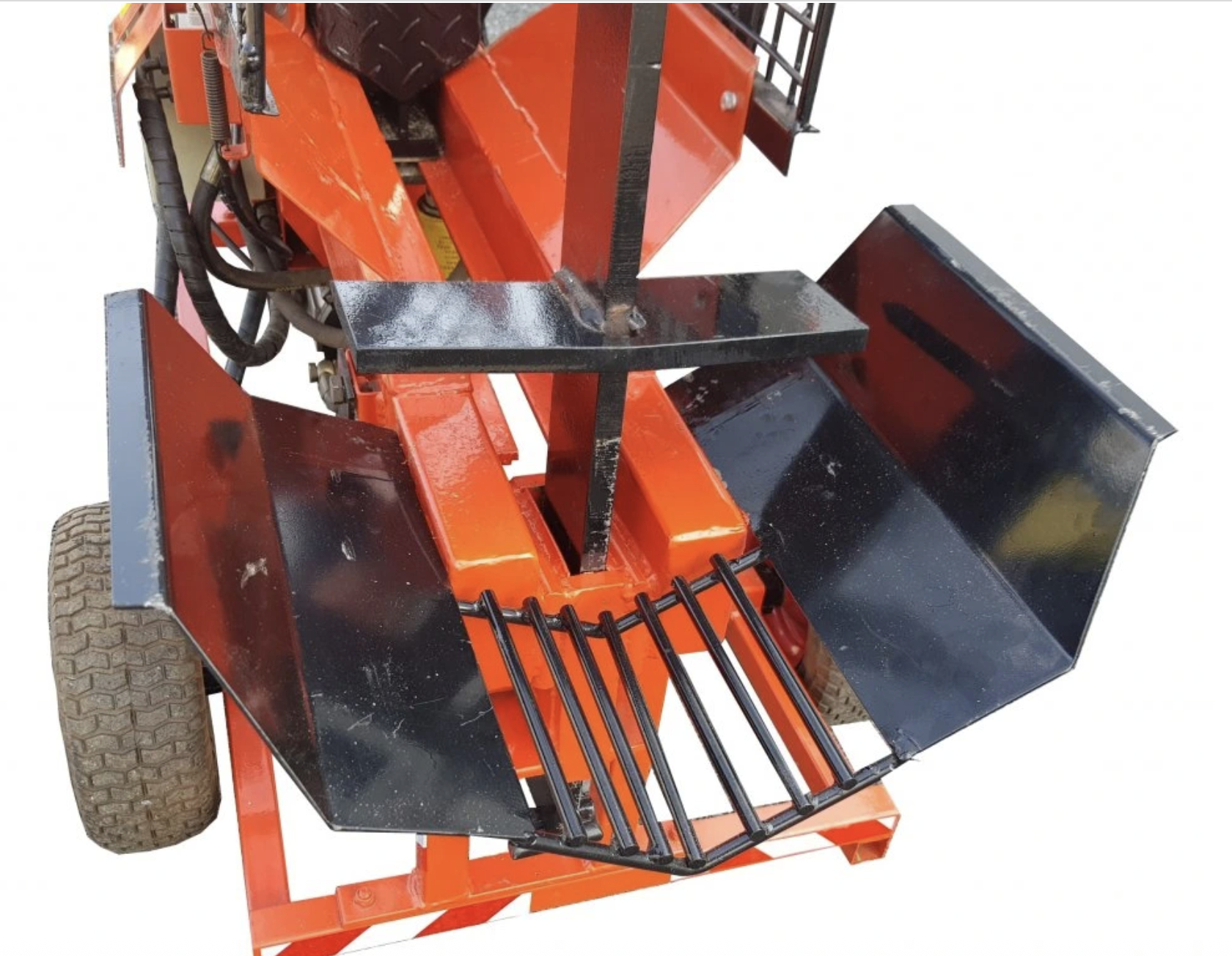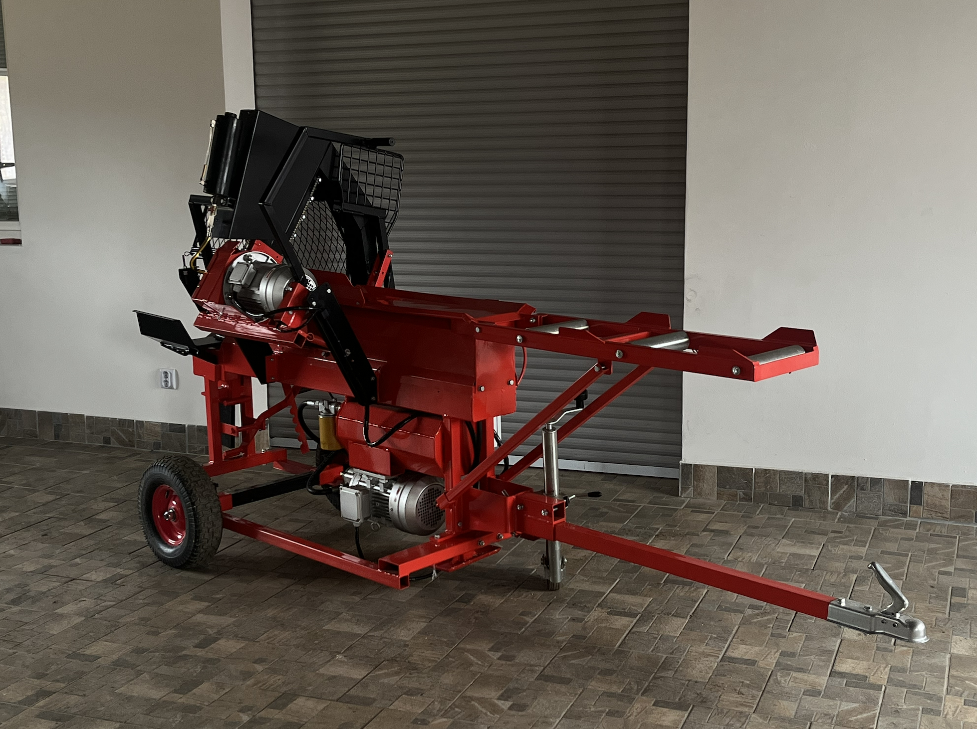 Štípací ústrojí - Hydraulický píst tlačí dřevo na pevný, výškově nastavitelný klím. Dřevo může být štípáno na poloviny, popř. při vytažení klínu na čtvrtiny. Postupně je naštípané dřevo vytlačováno např. do vozík, nebo stavebního kolečka
