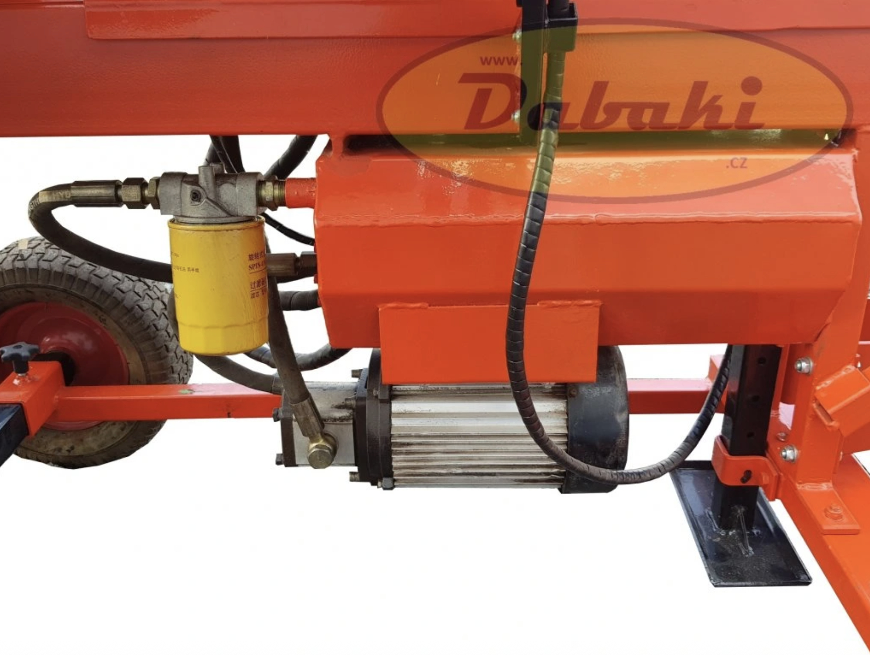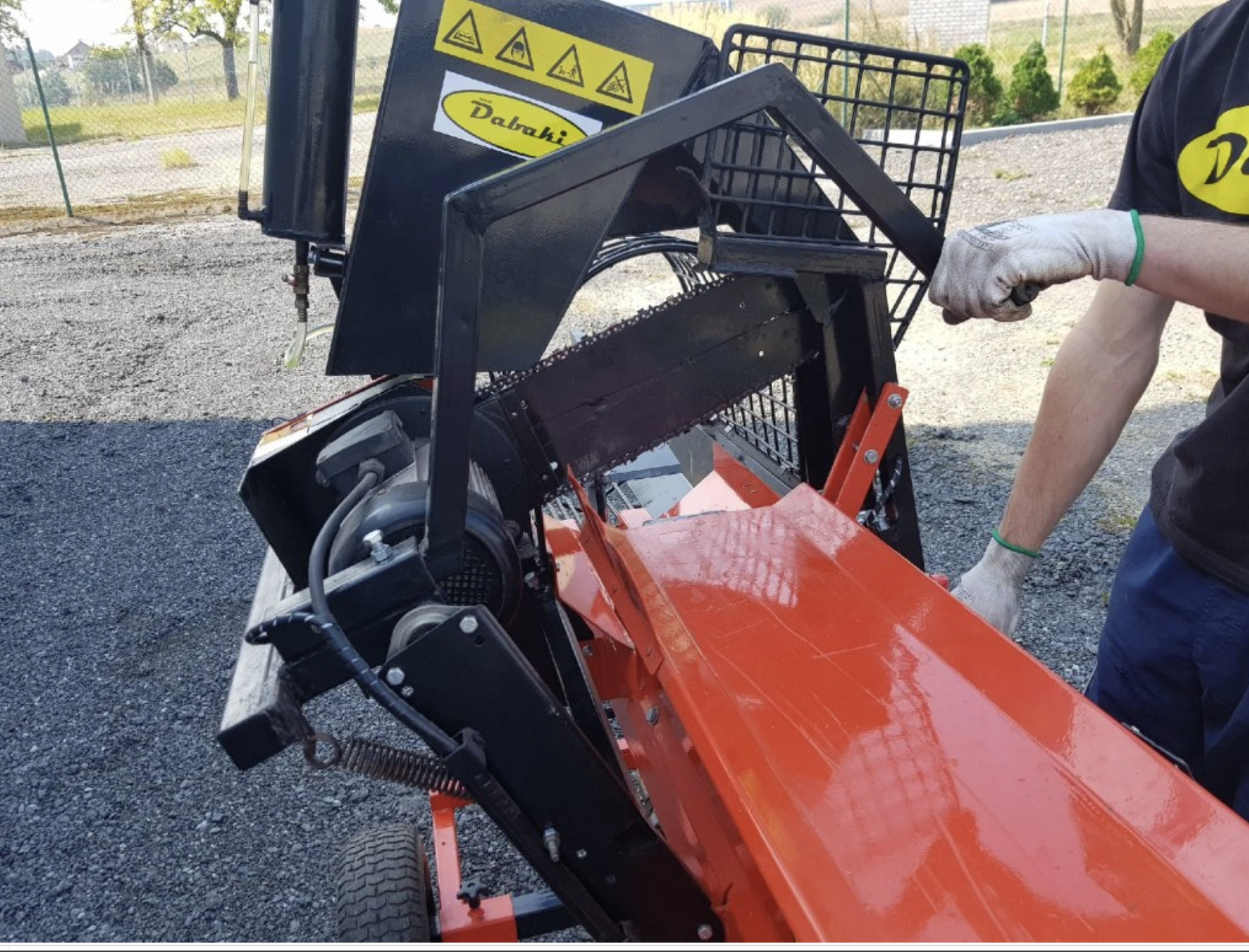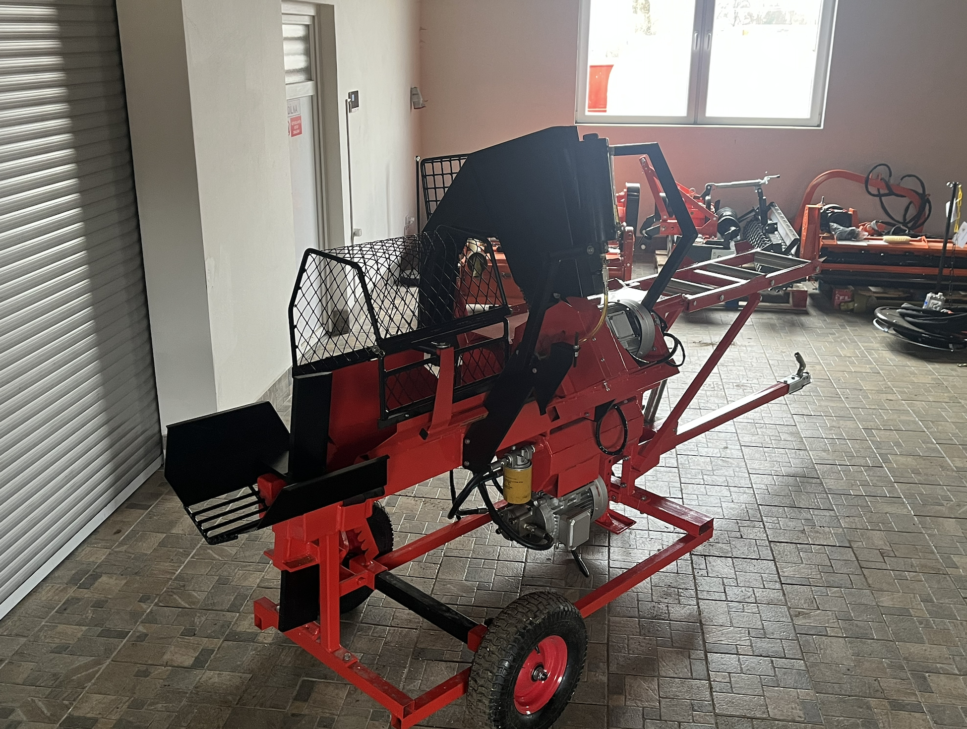 Štípací ústrojí - Hydraulický píst tlačí dřevo na pevný, výškově nastavitelný klím. Dřevo může být štípáno na poloviny, popř. při vytažení klínu na čtvrtiny. Postupně je naštípané dřevo vytlačováno např. do vozík, nebo stavebního kolečka