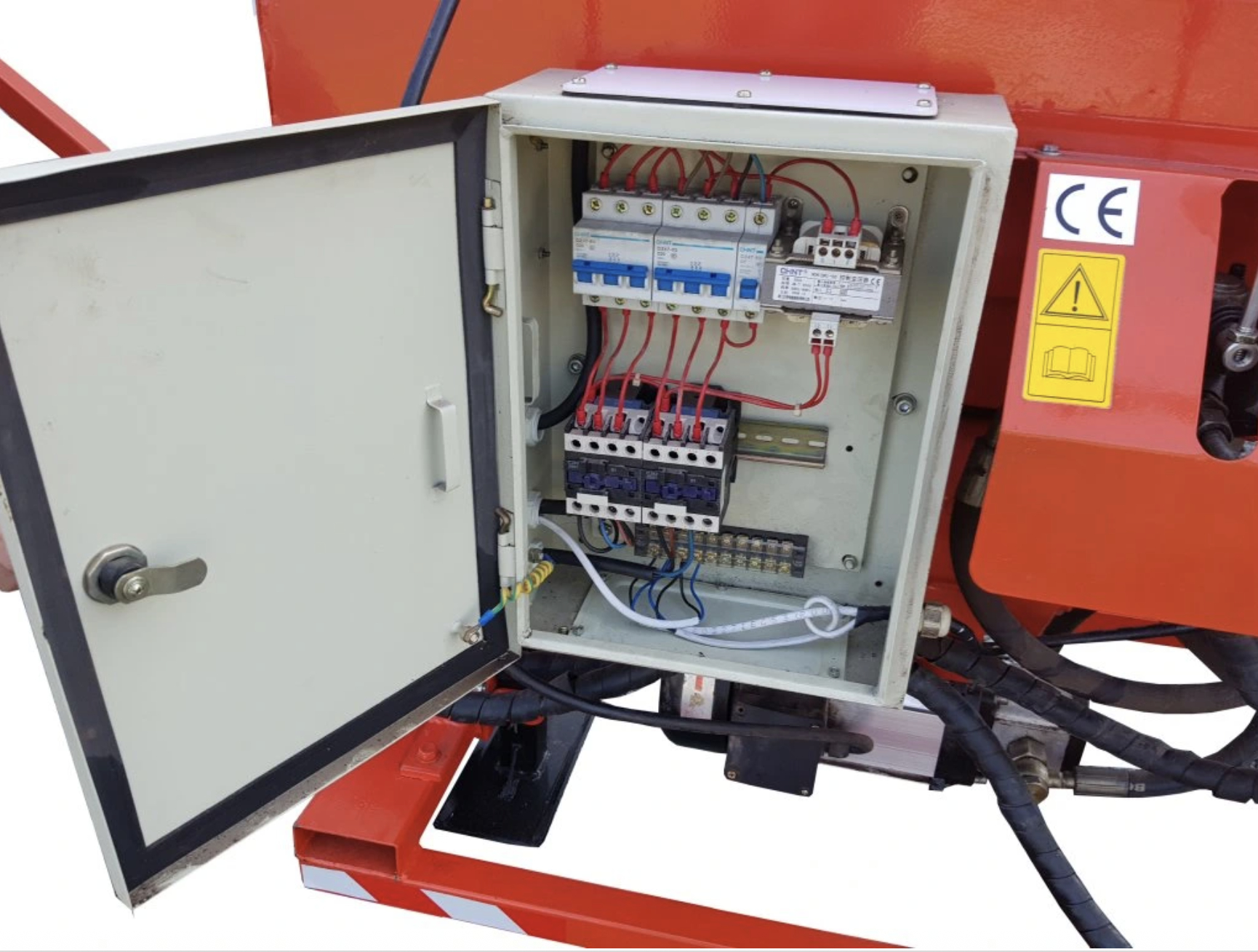 Hydraulická soustava - vlastní olejová nádrž, hydraulické čerpadlo, filtr, rozdělovač, píst. Hydraulické čerpadlo je poháněno elektromotorem (4 kW). Hydraulický okruh používá vlastní hydraulický olej (OTHP32). Hydraulický píst je konstruován pro dostatečnou tlačnou sílu 7T a přiměřenou pracovní rychlost. Ovládání pístu je hydraulickým rozdělovačem s pojistným ventilem.